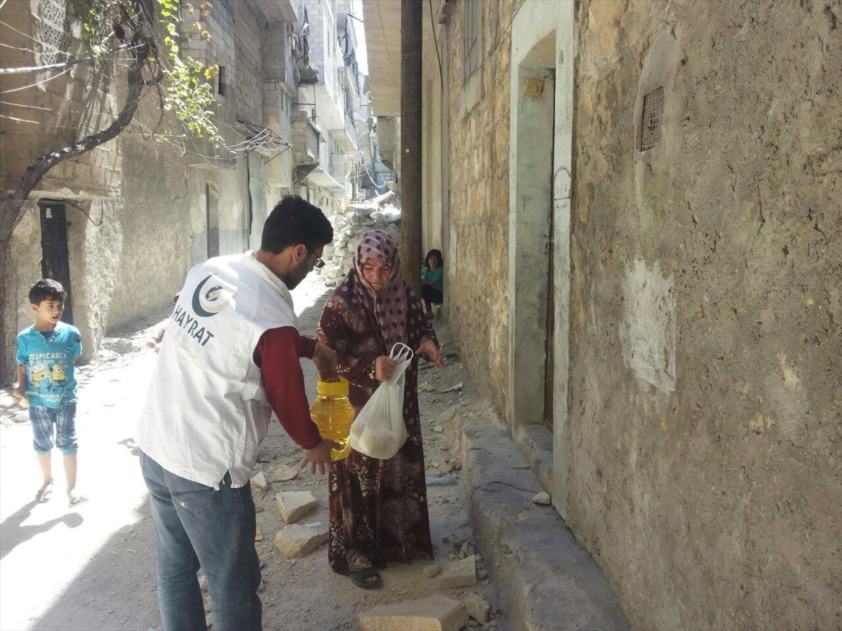 HATAY (AA) - Hayrat Yardım Derneği tarafından Suriye'nin Halep kentinin güvenli bölgelerine gıda gönderildi.