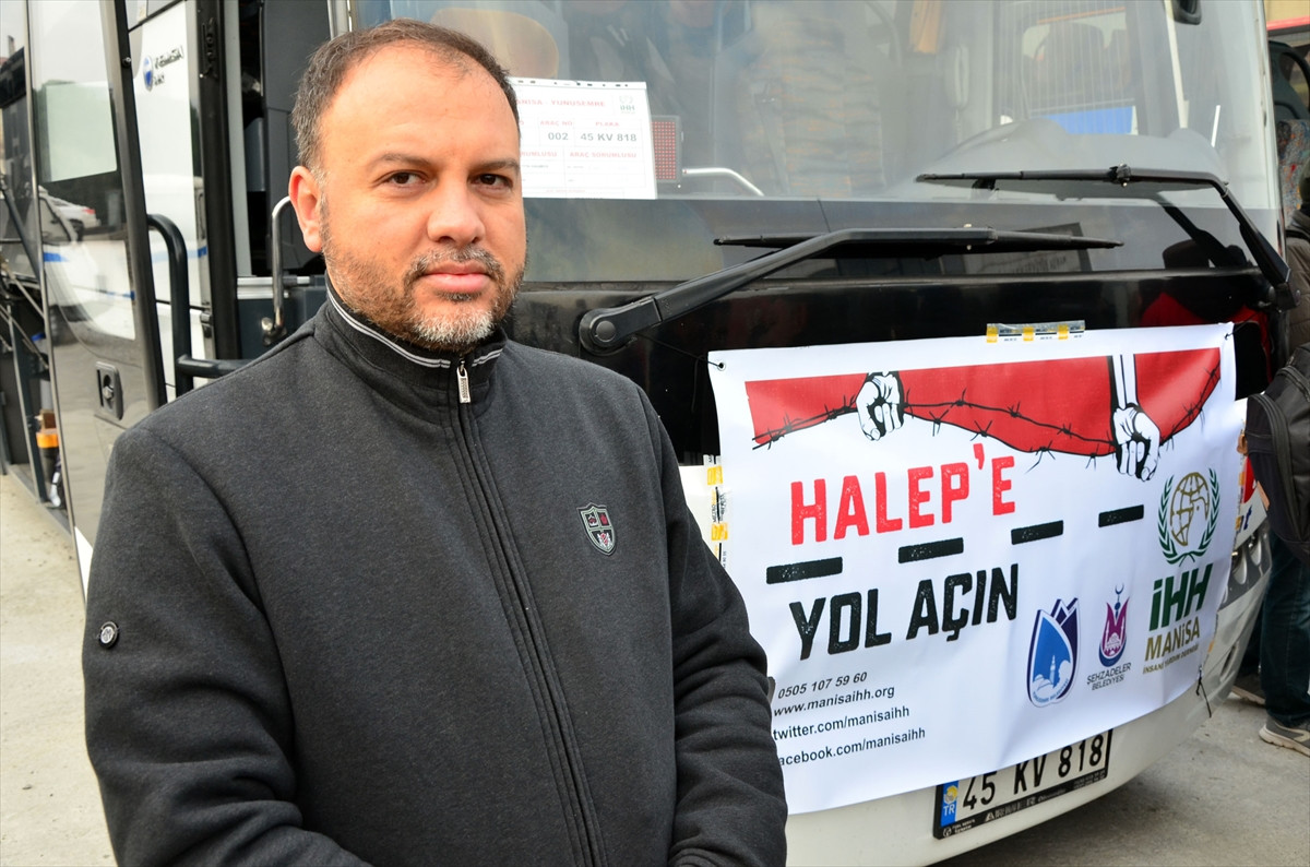 Halep'te saldırı altındaki sivillere destek vermek için İHH tarafından oluşturulan konvoyun Manisa grubu, Laleli Mahallesi Mesir Camisi önündeki meydanda toplandı. 3 otobüs, 1 minibüs ve 2 otomobilden oluşan konvoy, cami önünde İzmir'den yola çıkan yaklaşık 90 aracın bulunduğu konvoy ile birleşti.