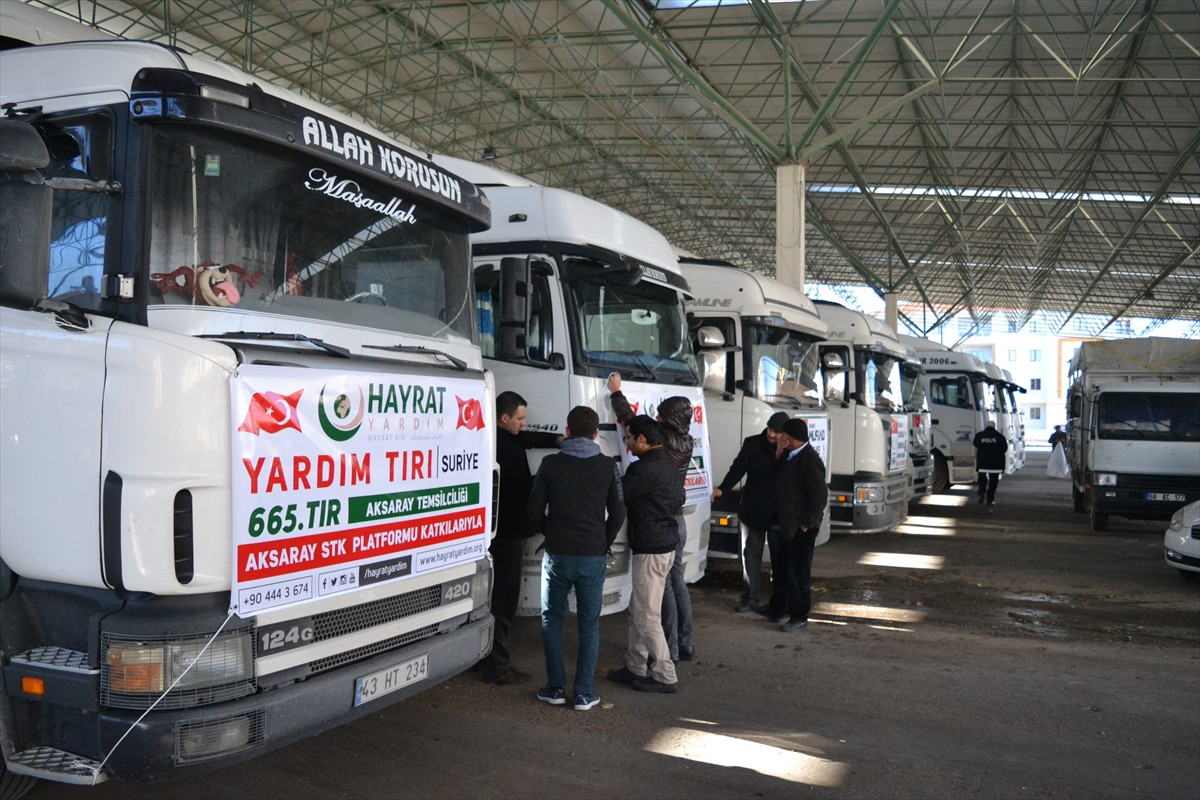 AKSARAY (AA) - Aksaray Sivil Toplum Platformunca "Halep'e Yol Açın" kampanyası kapsamında temin edilen, içinde 100 ton kömür ve 100 ton un bulunan 8 tır, yardımların ihtiyaç sahiplerine ulaştırılması için yola çıktı.