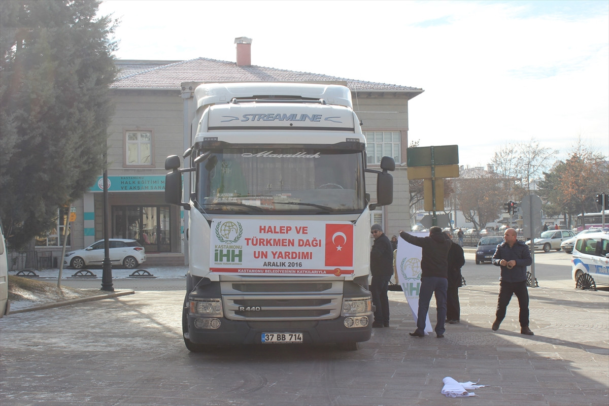 KASTAMONU (AA) - İnsan Hak ve Hürriyetleri (İHH) İnsani Yardım Derneği tarafından başlatılan "Halep'e Yol Açın" kampanyası kapsamında un ve çeşitli ihtiyaç malzemeleri bulunan bir tır, Kastamonu'dan bölgeye gönderildi.