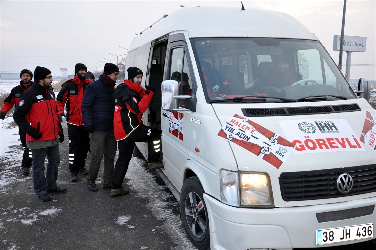 KAYSERİ (AA) - İnsan Hak ve Hürriyetleri (İHH) İnsani Yardım Vakfınca düzenlenen "Halep'e Yol Açın" kampanyası kapsamında Kayseri'de oluşturulan 100 araçlık konvoy, Halep'teki sivillere destek vermek için Hatay'a gitmek üzere yola çıktı.
