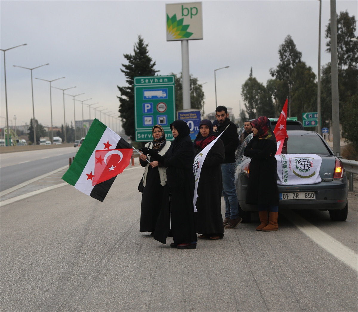 Konya'dan hareket eden konvoy, Tarsus-Gaziantep-Adana otobanı Sarıçam mevkisinde karşılandı. Burada konvoya Adana'dan yaklaşık 30 araçlık grup katıldı.