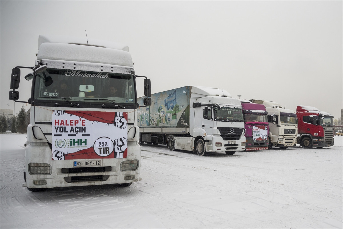 KONYA (AA) - Konya'da, İnsan Hak ve Hürriyetleri (İHH) İnsani Yardım Vakfının ''Halep'e Yol Açın'' kampanyası kapsamında temin edilen gıda ve yataklar, 10 tır ile İdlib'deki Suriyelilere gönderildi.