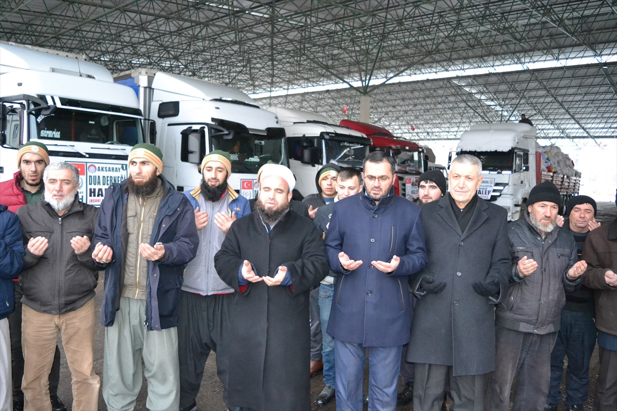 Konuşmanın ardından tırlar Haleplilere ulaştırılmak üzere dualarla uğurlandı.