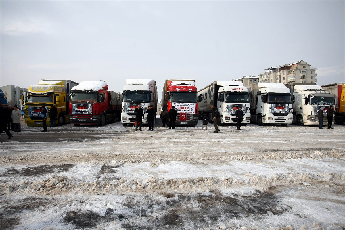 Malatya Valiliği öncülüğünde müftülük görevlileri, cami cemaati ve vatandaşların katkılarıyla toplanan yiyecek, giyecek, yakacak ve diğer malzemeleri taşıyan 25 tırın Suriye'ye uğurlanması dolayısıyla tören düzenlendi.