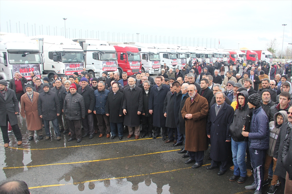 SAMSUN (AA) - Diyanet İşleri Başkanlığı ile Türkiye Diyanet Vakfı (TDV) öncülüğünde "Halep'te İnsanlık Ölmesin" sloganıyla başlatılan kampanya kapsamında Samsun'da toplanan yardım malzemelerini taşıyan 33 tır, bölgeye yola çıktı.
