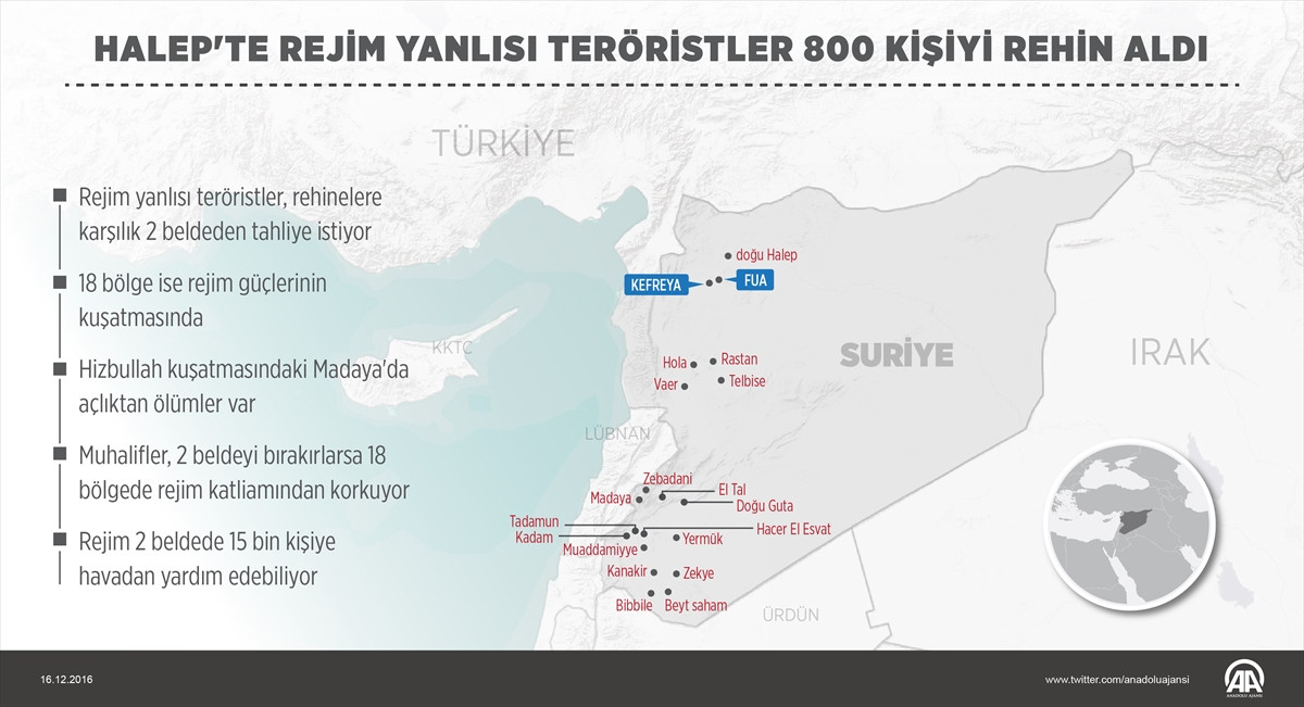 Ancak söz konusu beldeleri 1,5 yıldır kuşatmada tutan muhalifler, talepleri kabul etmemişti.