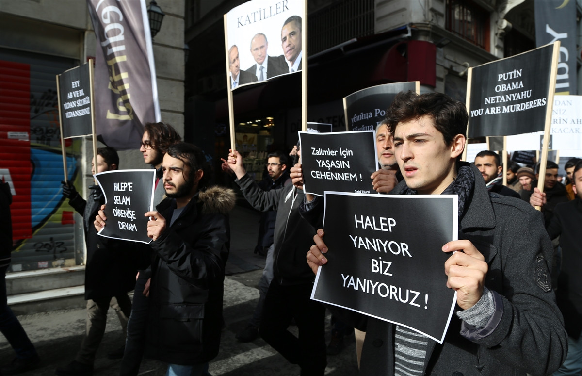 İSTANBUL (AA) - Yedi Hilal Derneği, Halep'te sivillere yönelik saldırıları protesto etti.