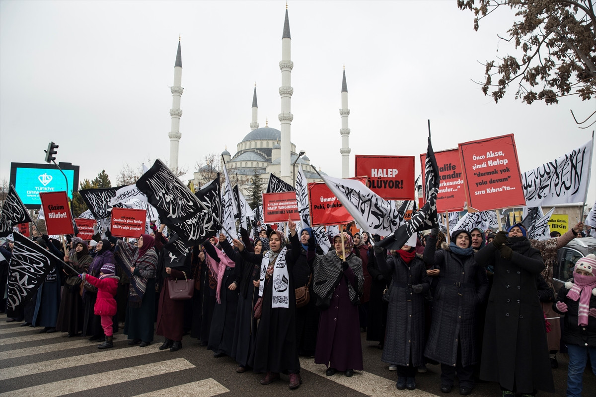 Kocatepe Camisi'nde toplanan bir grup, Cuma namazının ardından Halep'te öldürülen siviller için gıyabi cenaze namazı kıldı. Grup, daha sonra ABD Büyükelçiliğine yürümek istedi. Çevik kuvvet ekipleri, Bankacı Sokak ile Olgunlar Sokak köşesinde barikat kurarak grubun yürüyüşüne engel oldu.