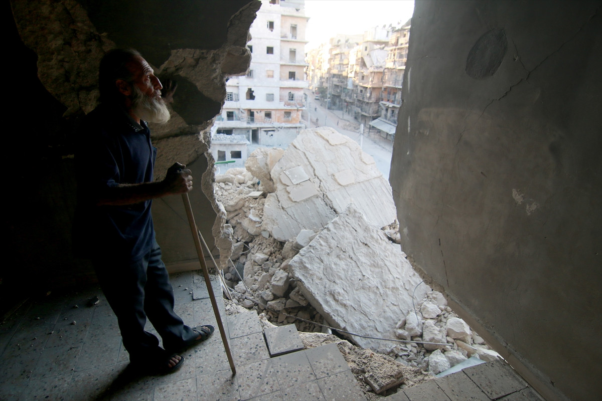 Halepli Ebu Hasan, Esed rejimi ve destekçilerinin düzenlediği saldırıların kurbanlarından yalnızca biri. Halep'in Tarık el-Bab semtindeki evi rejim ve müttefiklerinin 23 Eylül'deki bombardımanına maruz kalan 60 yaşındaki Ebu Hasan saldırıda iki oğlunu kaybetti, iki kızı ve eşi de yaralı olarak kurtarıldı.