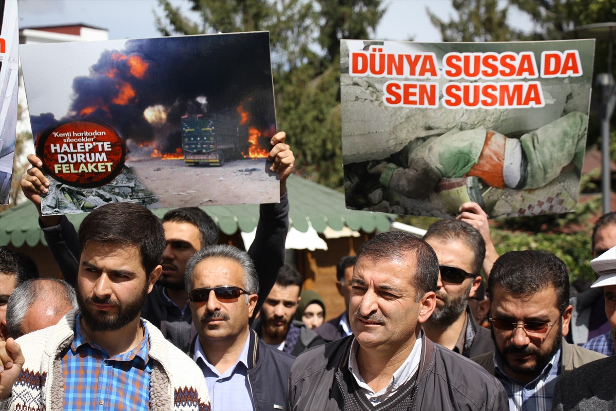 VAN (AA) - Suriye'nin Halep kentindeki saldırılarda sivillerin ve sağlık kuruluşlarının hedef alınması Van'da protesto edildi.