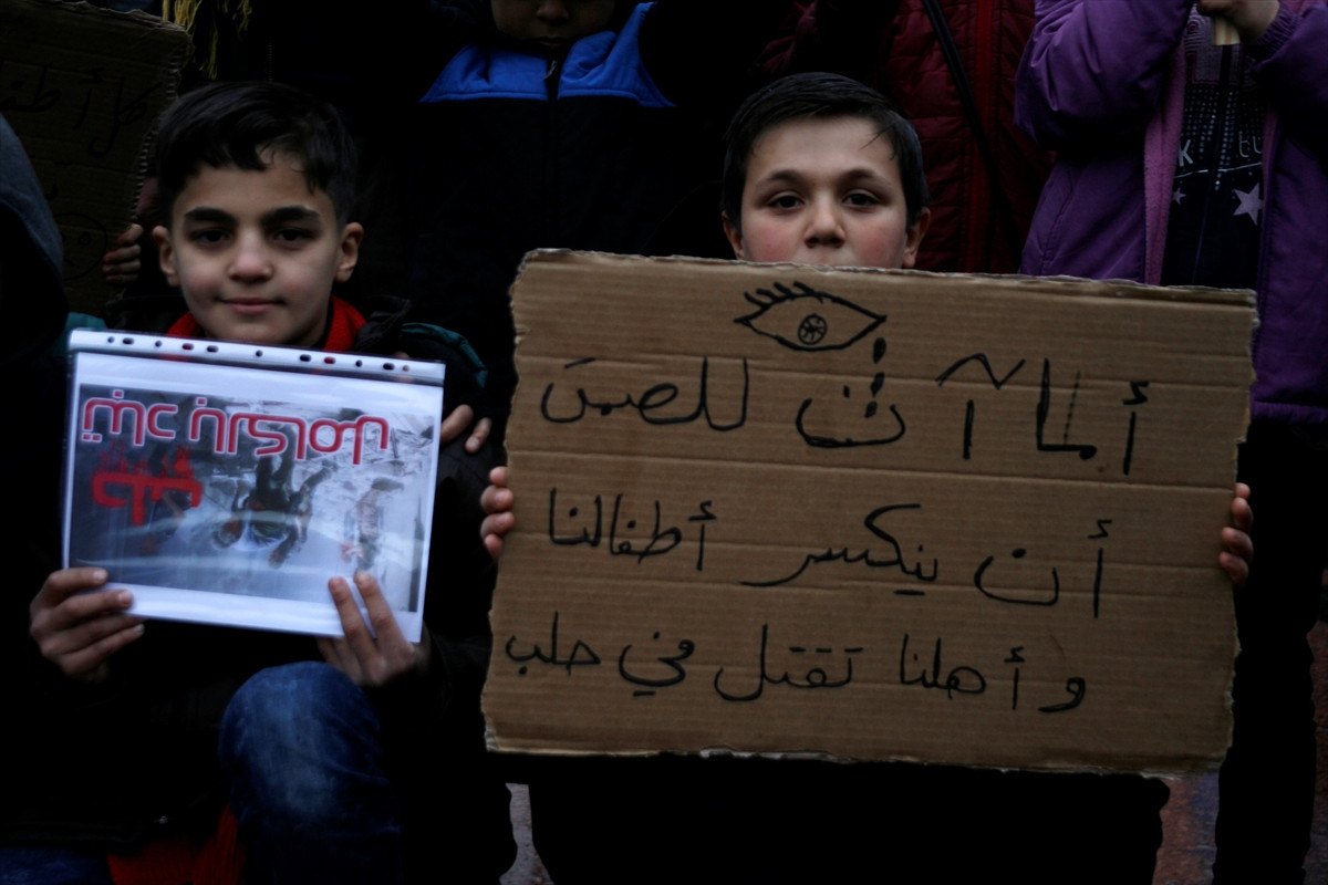 KİLİS (AA) - Suriye'nin Halep kentinde, sivillere yönelik saldırılar, Kilis'te yaşayan Suriyeliler tarafından protesto edildi.