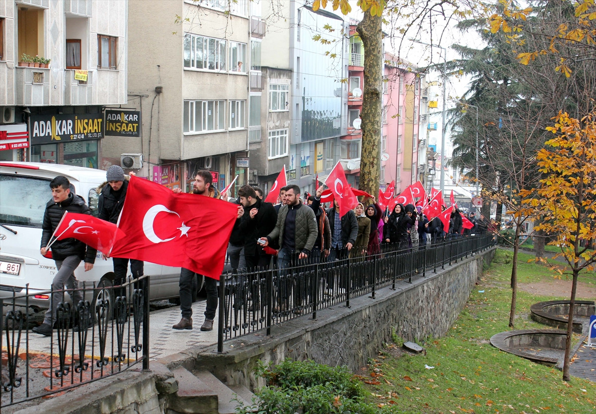 İstanbul ve Kayseri'deki terör saldırılarına da tepki gösterip, şehitlerin anısına saygı duruşunda bulunan ve İstiklal Marşı ve Kur'an-ı Kerim okuyan grup, eyleme son verdi.