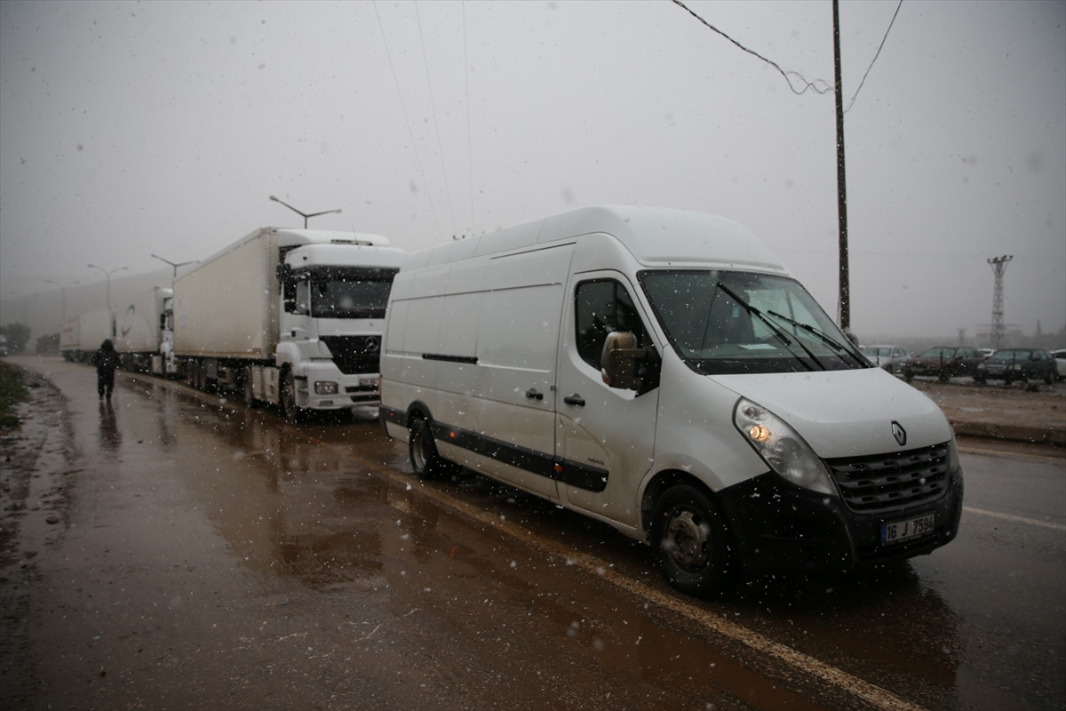 Zaman zaman ambulans geçişinin de olduğu Cilvegözü Sınır Kapısı'nda etkisini giderek artıran kar yağışı nedeniyle, bölgede görev yapanlar zor anlar yaşadı.