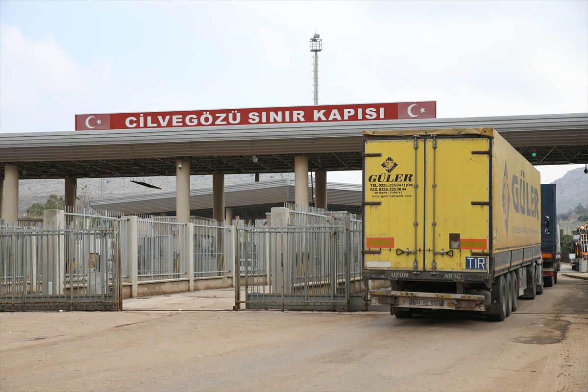 Hatay'ın Reyhanlı ilçesindeki Cilvegözü Sınır Kapısı'ndan geçiş yapan insani yardım malzemesi yüklü tırlar, kontrollerin ardından tampon bölgeye alınıyor. Burada Suriye'den gelen tırlara yüklenen battaniye ve gıda gibi yardım malzemeleri, dağıtılmak üzere İdlib'e gönderildi.