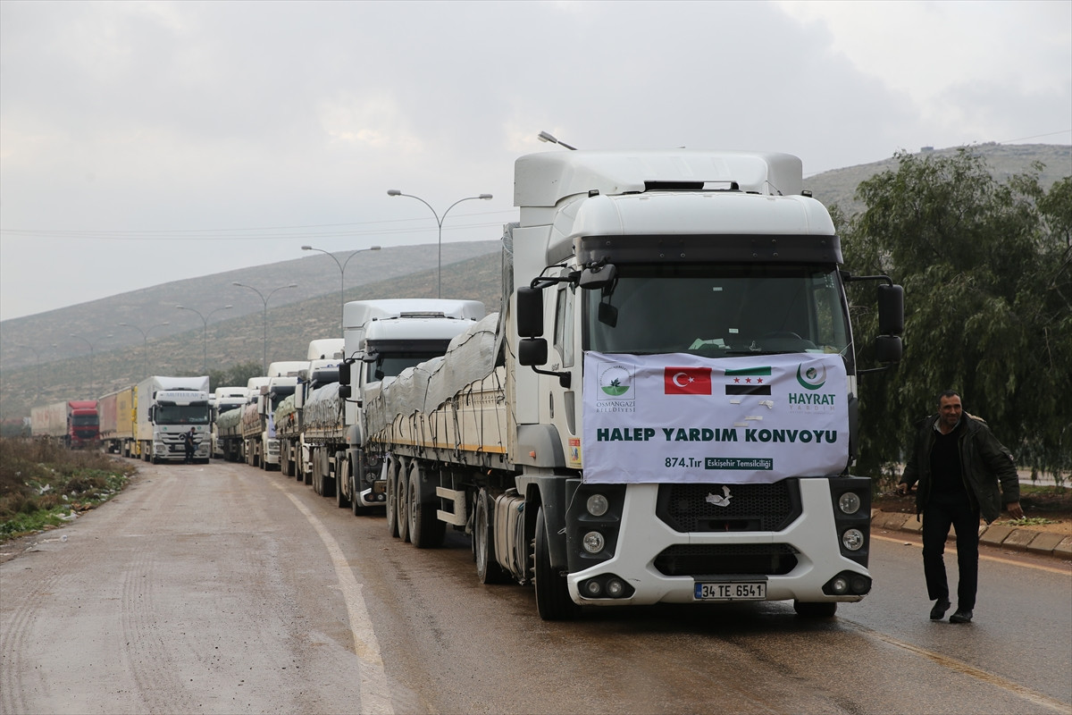 Yardım tırları, Reyhanlı ilçesindeki Cilvegözü Sınır Kapısı'ndan Suriye'ye geçiş yaptı.