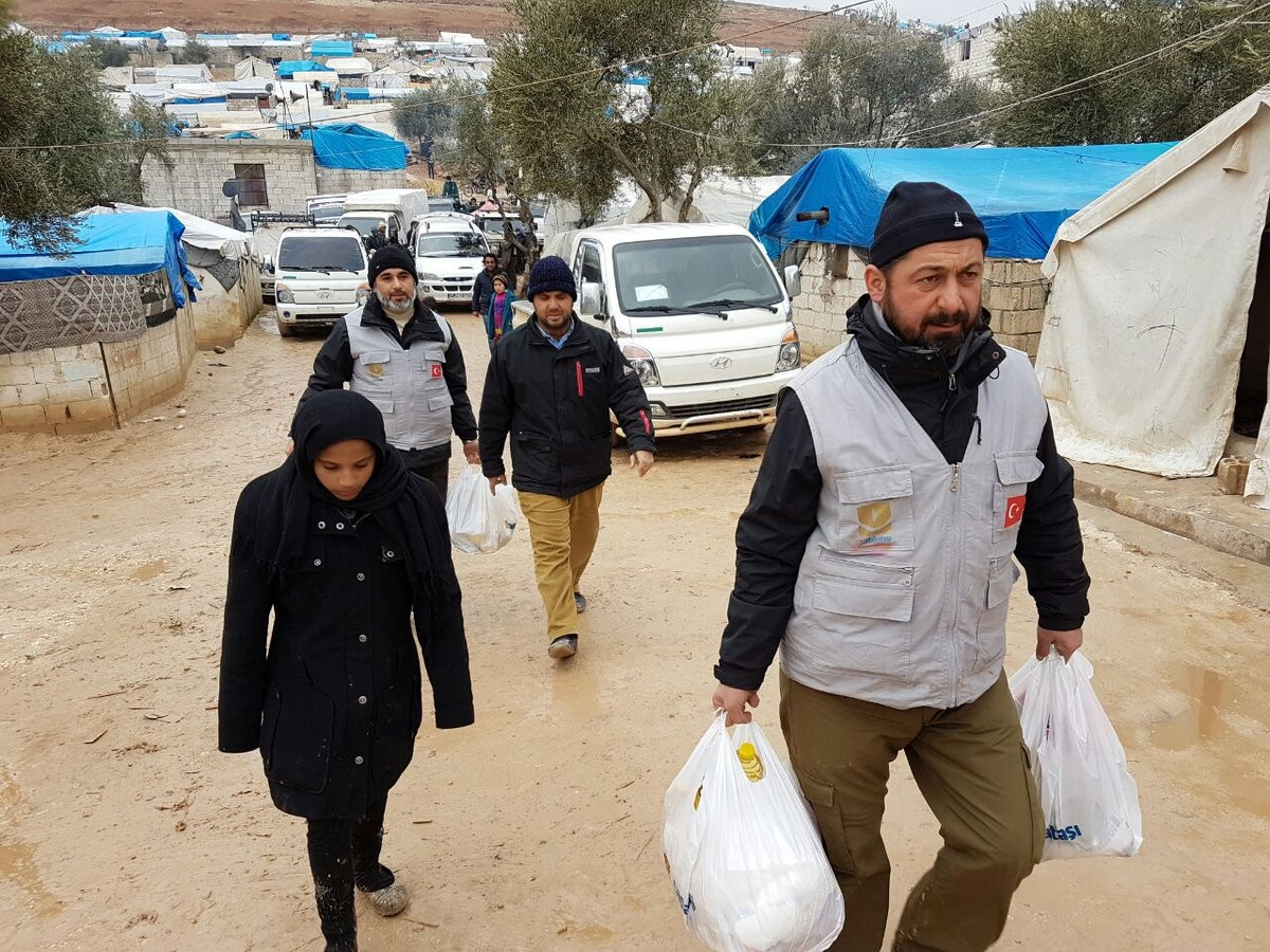 Hava şartlarının aileleri oldukça zorladığını belirten Özdal, "Halep'ten İdlib'teki kamplara getirilen 100 ailemize battaniye, gıda kolisi ile çocukları için ayakkabı dağıtıldı. Ailelerin ihtiyaçlarını tespit ederek destek olmaya çalışıyoruz. Soğuktan ayakları üşüyen çocukların ayakkabılarını giydirdik, üşüyen ellerini de ısıttık. Onların biraz olsun mutlu olmaları bizleri de mutlu ediyor." diye konuştu.