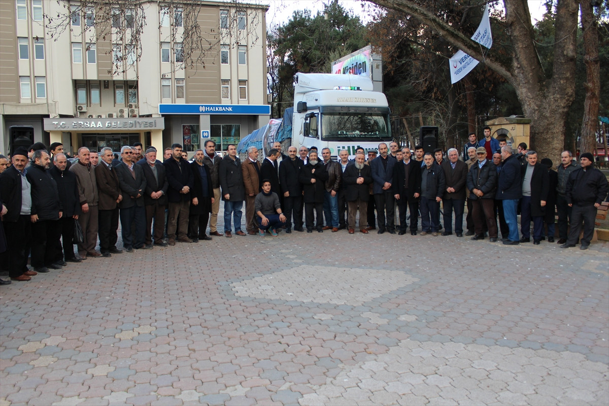 Erbaa İnsani Yardım Derneği, Erbaa Belediyesi, AK Parti Kadın Kolları ve sivil toplum örgütlerince düzenlenen kampanyada toplanan gıda yardımlarının uğurlanması amacıyla Cumhuriyet Meydanı'nda tören düzenlendi.