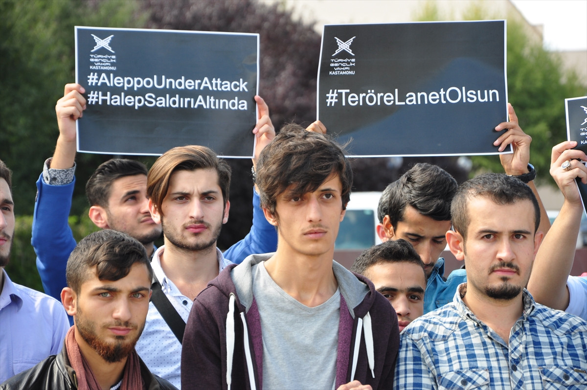 Türkiye Gençlik Vakfı (TÜGVA) Kastamonu İl Temsilciliği tarafından Halep'te yaşanan saldırılar basın açıklaması ve siyah pankartlarla protesto edildi. Kastamonu Üniversitesi Meslek Yüksekokulu önünde toplanan öğrenciler ve vakıf temsilcileri, Halep'te yapılan saldırıları ellerindeki siyah pankartlarla kınadı. Vakıf adına basın açıklamasını okuyan TÜGVA Yüksek Öğrenim Koordinatörlüğü Üniversite Temsilcisi Yunus Çay, İslam coğrafyasının küresel sömürü düzeninin kıskacında kan gölüne çevrildiğini belirtti. Suriye'de her gün insanlık dramı yaşandığını vurgulayan Çay şunları söyledi: "Halep'e yapılan son bombardımanda çoğu çocuk ve kadın 500'ü aşkın sivil katledilirken kendisini muasır medeniyet olarak gören ülkelerin ve onların hükümranlığını koruyan birliklerin sessizliği, Müslüman ölümleri üzerinden yeni bir sömürü imparatorluğu kurulmasının planlandığına işaret etmektedir. Bizler, Müslümanlar olarak masum insanların ölümlerini ırk, din ve mezhep ayrımı gütmeden eşit görmekteyiz. Ölümlerin mukayesesi yapılmaz ancak dünyanın bir ucundaki Amerika'da öldürülen 5 kişi ile savunmasız halde bombardıman altında katledilen, çoğu çocuk ve kadın 500 kişinin ölümünün dünya kamuoyunda edindikleri yer hepimizin malumudur. Gösterdiğimiz bu hassasiyeti diğer milletlerden de insanlık namına beklemekteyiz. Müslümanlar hunharca katledildiğinde sessiz kalan, güçlünün haklı olduğu bir uluslararası hukuk sistemini ve onun iki yüzlü araçlarını reddediyoruz."