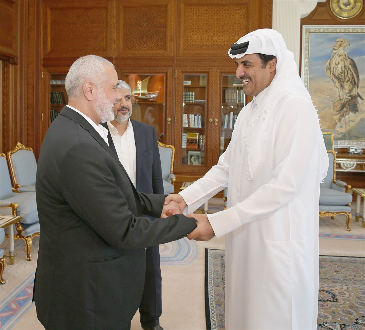 DOHA (AA) - Katar Emiri Şeyh Temim bin Hamad Al Sani'nin, Hamas'ın Siyasi Büro Başkanı Halid Meşal ve Yardımcısı İsmail Heniyye ile bir araya geldiği bildirildi.