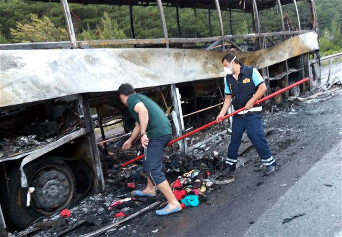 Tarsus ilçesi Gülekboğazı mevkisinde meydana gelen olayda, yangını, otobüsün arkasında seyreden otomobil sürücüleri fark etti.
