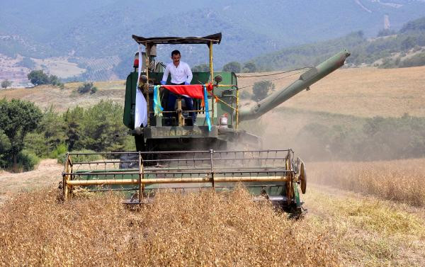 OSMANİYE'nin Hasanbeyli ilçesinde, 'Nohut eken sağlık biçer' projesi kapsamında 1400 dekara ekilen nohudun hasadına başlandı.