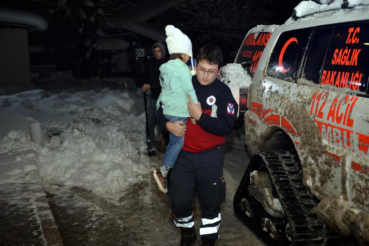 Sağlık ekipleri, paletli ambulansla 1,5 metre kar kalınlığı bulunan köye hareket etti. Ambulans, söz konusu adrese yaklaşık 3 saatte ulaşabildi. Sağlık ekipleri, daha sonra kız kardeşleri Düzce Atatürk Devlet Hastanesine kaldırdı. İki kardeş burada tedavi altına alındı.
