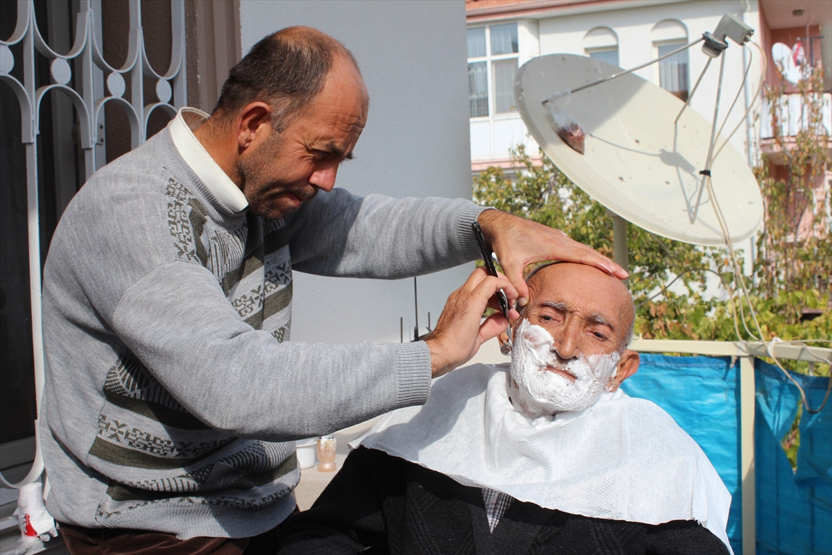 Kültür ve Sosyal İşler Müdürlüğünce yürütülen proje çerçevesinde, belirli aralıklarla evlerinde ziyaret edilen yaşlı, engelli ve hastalar saç ve sakal tıraşı ediliyor.