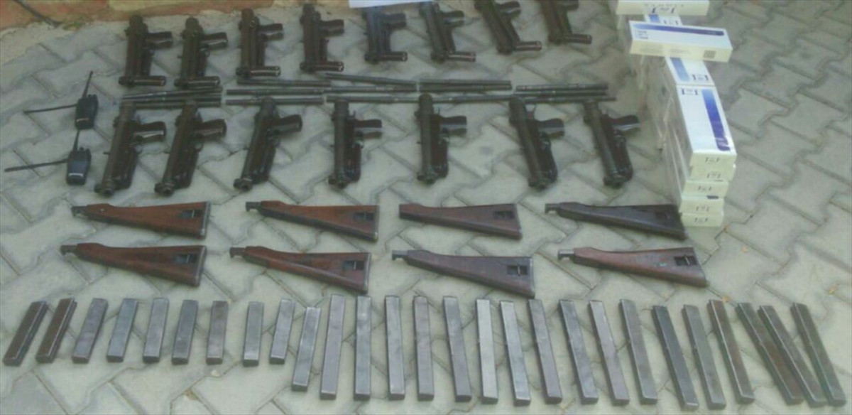 Çevrede inceleme yapan hudut birlikleri, çantalarda 15 hafif makineli silah ve bunlara ait 27 şarjör ile 20 karton sigara ele geçirdi.