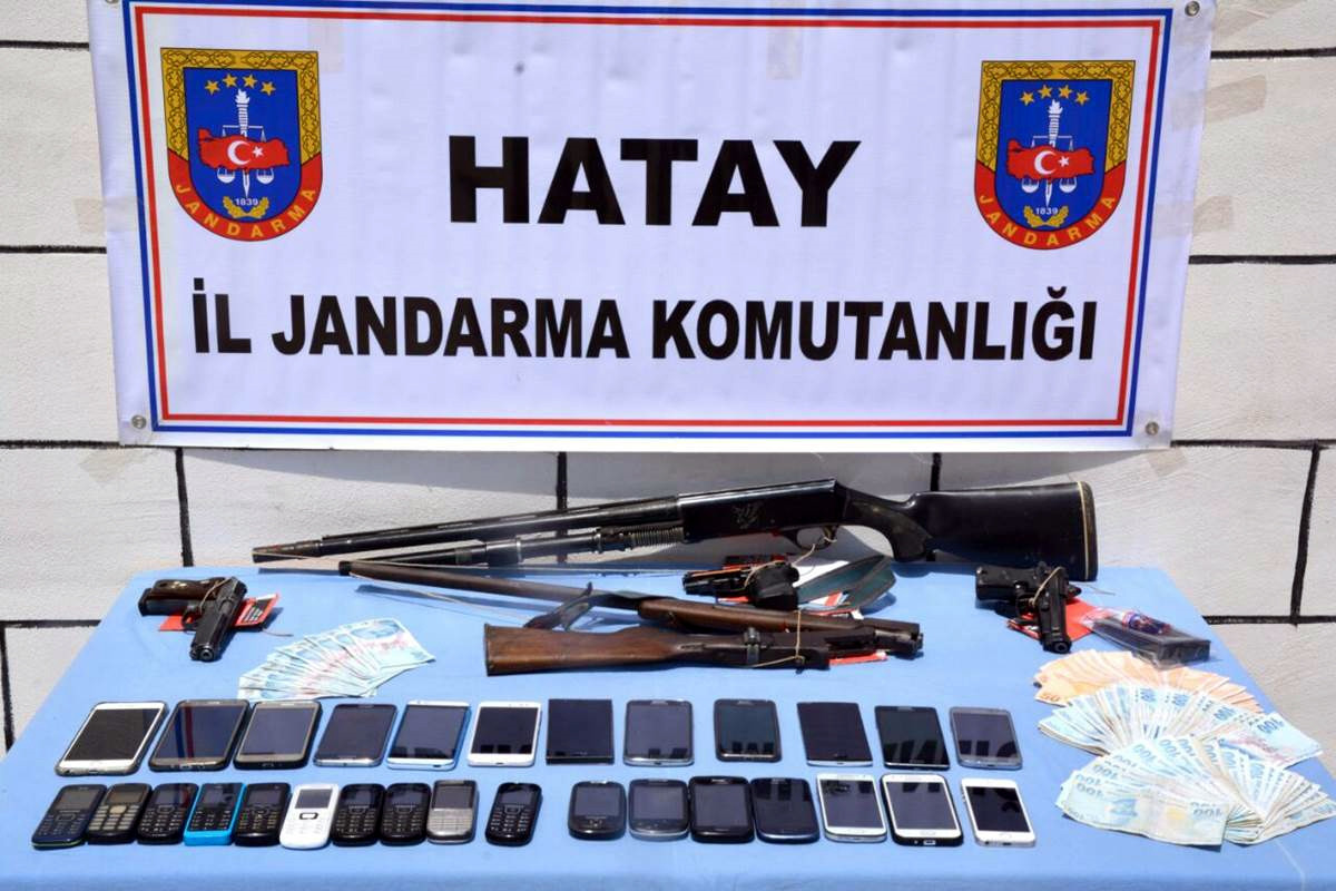 Öte yandan, şüphelilerin adreslerinde yapılan aramalarda, 28 cep telefonu, 28 SIM kart, bir 9 milimetre çapında kuru sıkıdan bozma tabanca, 2 kuru sıkı tabanca, 5 tabanca şarjörü, 2 av tüfeği, bir hafıza kartı, 2 hesap defteri, 3 hesap ekstresi, 9 bin 550 lira suçtan elde edilen para ve 2 sahte yabancı tanıtma kartı ele geçirildi.