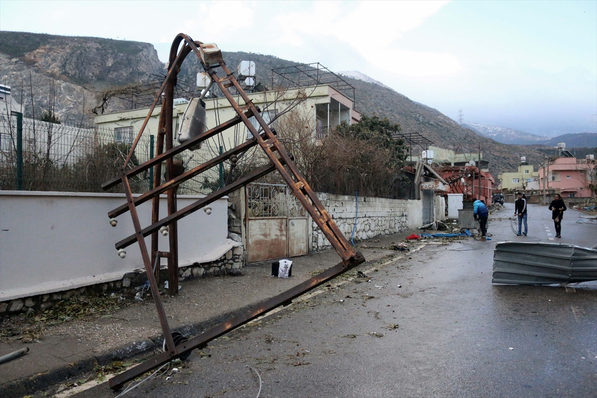 HATAY (AA) - Hatay'ın İskenderun ilçesindeki kuvvetli fırtına nedeniyle 2 tır devrilirken, elektrik direkleri ve MOBESE kameraları da zarar gördü.