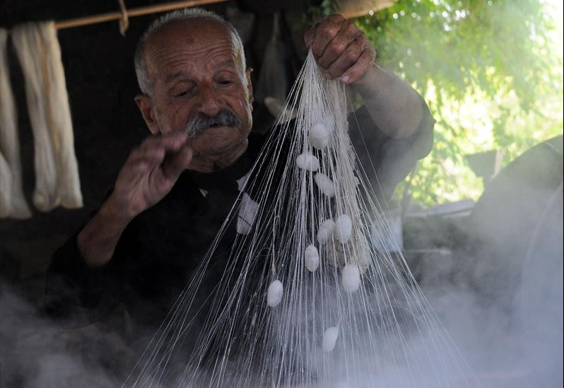 Hatay'ın geçmiş dönemde en önemli meslekleri arasında yer alan ancak ilerleyen yıllarla birlikte yok olmaya yüz tutan ipek böceği yetiştiriciliği yeniden canlandırılıyor. Köylülere dağıttıkları tohumlardan çıkan kozaları Gümüşgöze Mahallesi'ndeki evlerinin önündeki kazanda kaynatan aile, el dokuma tezgahlarda elde ettikleri ipek, kravat, masa örtüsü, fular gibi sayısız ürünü dokuyor. Küçük yaşlarda ipekçilikle uğraşmaya başlayan Hasan Büyükaşık (83), sabahın erken saatinde yaktığı ocağının başına geçerek kendi bestelediği ve işini anlatan şarkısıyla kozadan iplikleri kaynayan sudan büyük bir incelikle çıkarıyor. Dedelerinin de bu işi yaparak geçimini sağladığını ifade eden Büyükaşık, 7 yaşında öğrendiği işi o günden bu yana büyük bir aşkla yaptığını ve çocuklarına da öğrettiğini söyledi. Yılmaz Büyükaşık, 6 kuşaktır bu işi yaptıklarını yurt içinin yanı sıra yurt dışına da ipekten elde ettikleri ürünleri gönderdiklerini kaydetti. Babasının hala kazanın başında olduğunu belirten Büyükaşık, ''Koza Birlik'ten aldığımız ve köylülere dağıttığımız tohumları bu aylarda toplayıp çalışmalara başlıyoruz. Elimizde, Hatay'a özgü ve yok olma tehlikesi altındaki ipek böceği türü 'Hatay Sarısı'ndan 500 kadar yumurta var, onları da üretip çoğaltarak, işimizi büyük bir aşkla yürütüyoruz. Kozadan çektiğimiz ipekleri el tezgahlarında dokuyoruz. İpekten yaptığımız ürünleri, ABD başta olmak üzere Almanya, Danimarka gibi birçok ülkeye gönderiyoruz'' diye konuştu. Hatay'da geleneksel yöntemlerle yaptıkları işin her platformda tanıtımı için çaba gösterdiklerini vurgulayan Büyükaşık, bu kapsamda hemen her fuara el dokuma tezgahlarıyla katılarak bu işin tanıtımını yapmaya gayret ettiklerini söyledi. Ali Büyükaşık da Hatay'da ipek üretiminin devamını sağlamak için evlerinin bulunduğu alana okul yaptırma çalışmalarının bulunduğunu, ancak bunu kendi imkanlarıyla yaptıkları için 2020 yılına kadar ancak tamamlanabileceğini sözlerine ekledi.