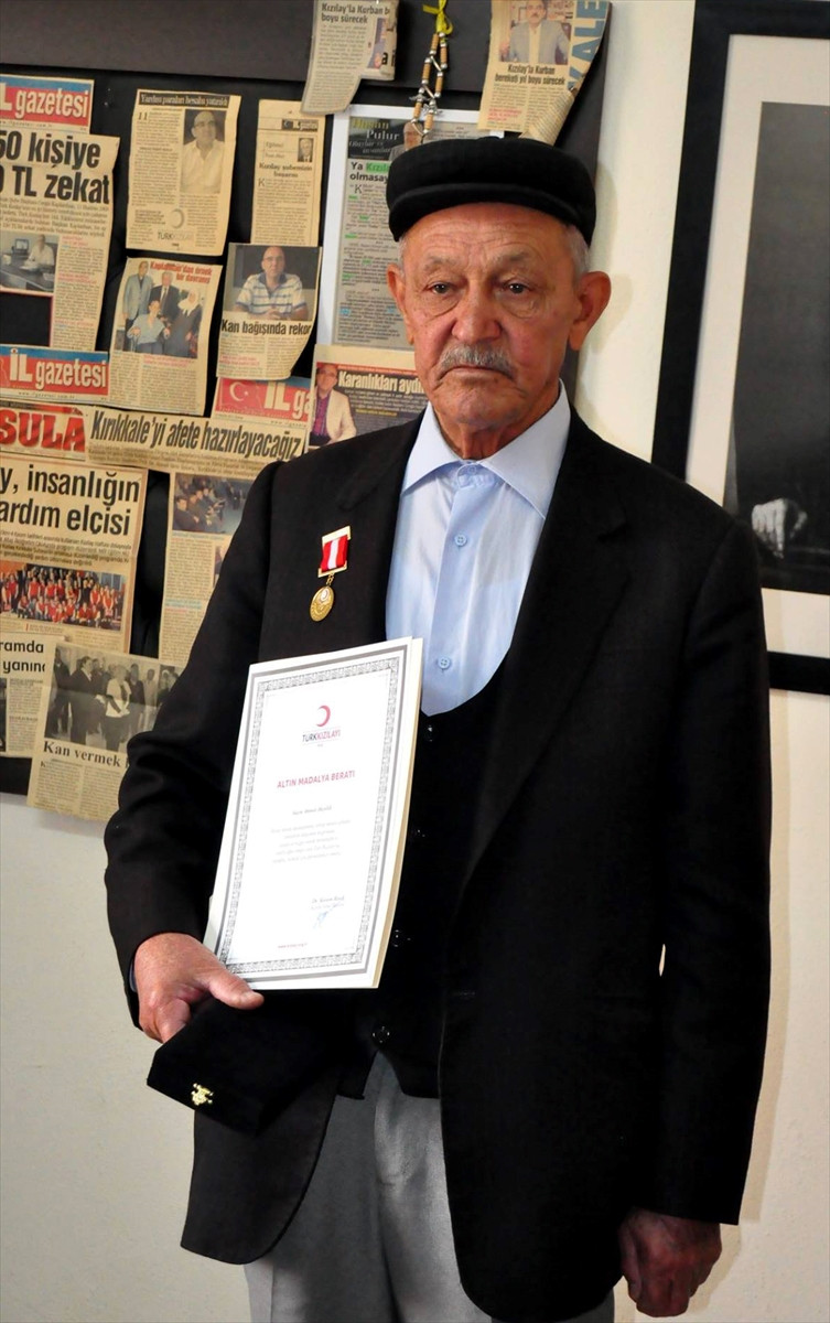 KIRIKKALE (AA) - Kırıkkale'nin Yahşihan ilçesinde, Kızılırmak kıyısında bulunan 30 dönümlük arazisini Türk Kızılayına bağışlayan 79 yaşındaki Ahmet Akçelik'e altın madalya verildi.