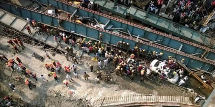 Dün öğlen saatlerinde, Hindistan'da inşaat halindeki bir köprünün işlek bir caddenin üzerine çökmesiyle birlikte birçok yaralı ve ölen olduğu bildirilmişti. İtfaiye ekipleri ve olayı gören insanlar elleriyle taş yığınını kazarak enkaz altında kalan vatandaşları kurtarmaya çalıştı. Köprünün ihmal nedeniyle çökmesi üzerine köprüyü inşa eden IVRCL şirketinin 5 yetkilisi gözaltına alındı ve Kalküta'da bulunan şubesi mühürlendi. Bu arada olayda ölenlerin sayısı 23'e, yaralananların sayısı 80'e yükseldi. Bölgede arama kurtarma çalışmaları devam ederken, enkaz altında kalanları kurtarmak için ekipler, köpekler ve özel kameralar kullanıyor. IVRCL şirketi adına dün açıklamada yapan KP Rao, "İşin yüzde 45'i kalmıştı. Bir kirişi koymamışız sonra diğeri de yıkılmış." itirafında bulunmuştu. Şirket köprü inşaatı için 2007'de anlaşma imzalamıştı. Hindistan'da inşaat şirketlerinin kalitesiz malzeme kullanması ve gerekli denetimlerin yapılmaması nedeniyle bu tür kazalara sık rastlanıyor.