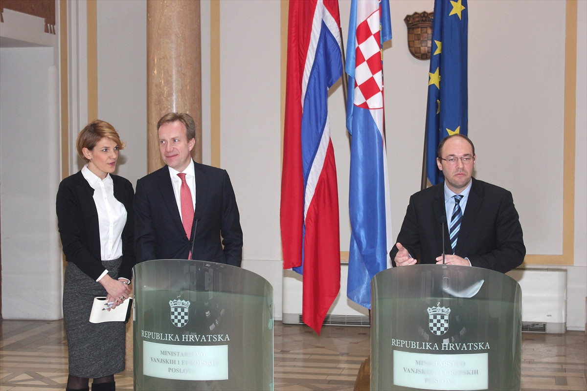 Bakanlıktaki görüşmenin ardından düzenlenen ortak basın toplantısında konuşan Brende, Hırvatistan'ı Avrupa Birliği (AB) ve NATO üyelikleri konusunda gösterdiği başarıdan dolayı tebrik etti.