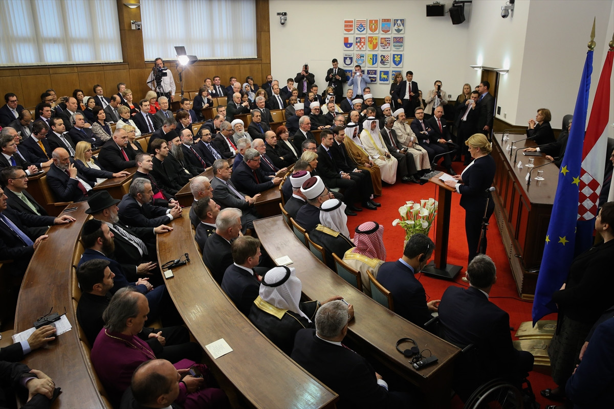 Diyanet İşleri Başkanı Mehmet Görmez'in de hazır bulunduğu oturuma Hırvatistan Cumhurbaşkanı Kolinda Grabar Kitarovic, Meclis Başkanı Zeljko Reiner, Başbakan Tihomir Oreskovic, bakanlar, büyükelçiler, din adamları ve diğer konuklar katıldı.