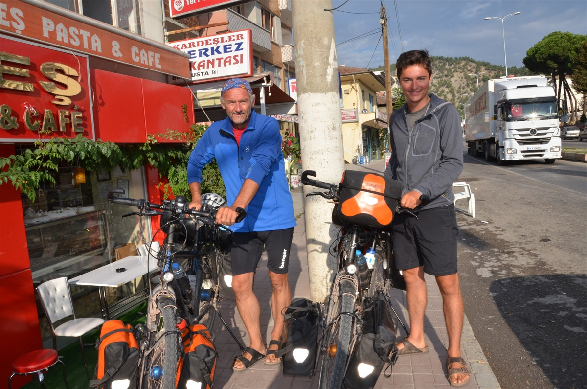 Hollanda’nın başkenti Amsterdam’dan yaklaşık 1,5 ay önce bisikletleriyle yola çıkan Ronald Dekker (54) ve oğlu Maurıce Dekker (23) Kastamonu’nun Hanönü ilçesine geldi.