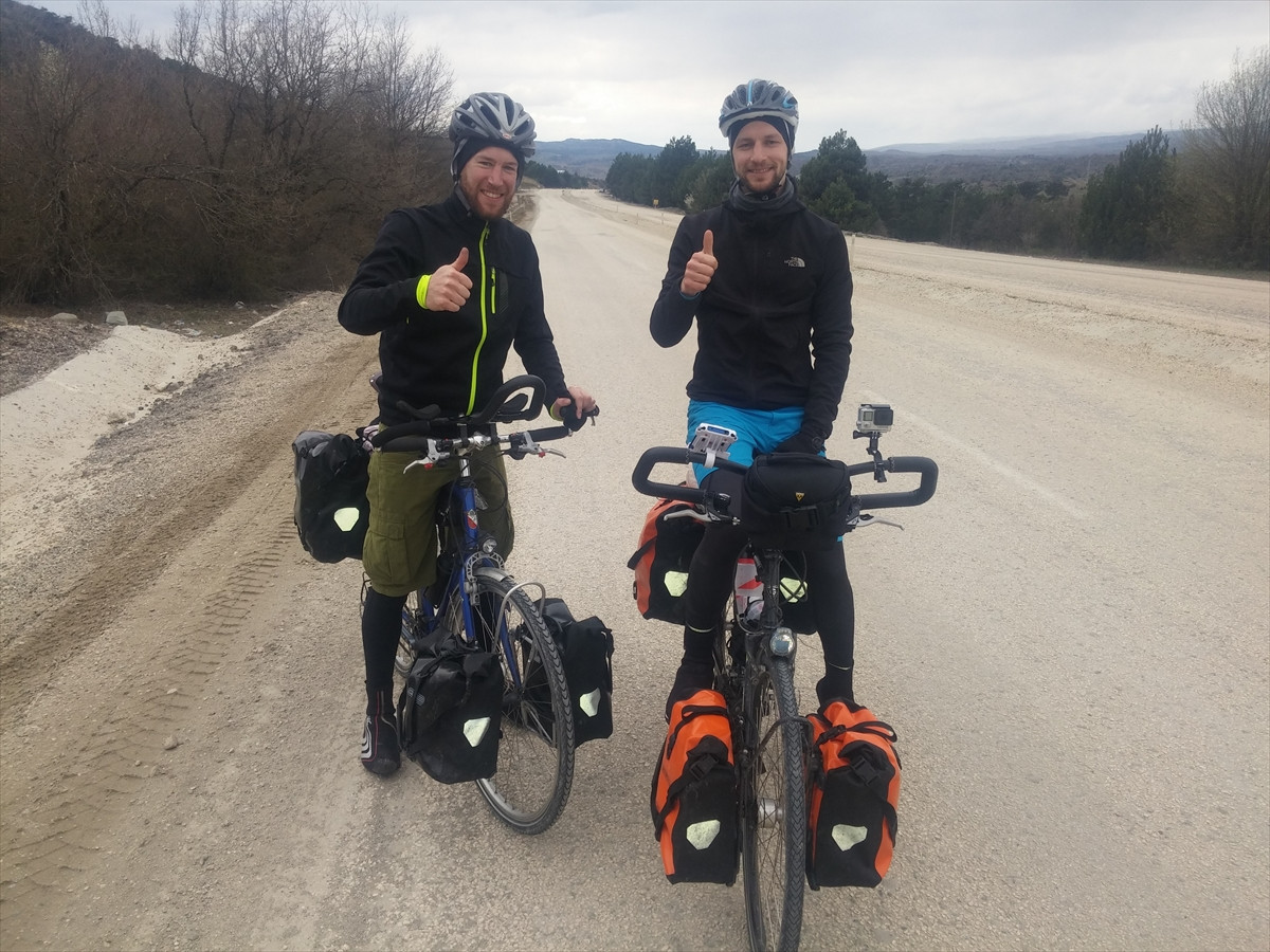 Hollanda'nın Amsterdam Üniversitesi Çevre Mühendisliği bölümü öğrencileri Boris Van Zanten (27) ve Brenden Jongman (30), Kırgızistan'ın Bişkek kentine gitmek üzere bisikletleriyle yola çıktı.