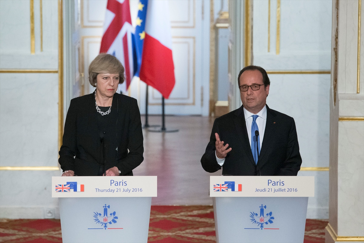 Hollande, İngiltere Başbakanı Theresa May'i Elysee Sarayı'nda kabul etti. İkili görüşme sonrası düzenlenen ortak basın toplantısında konuşan Hollande, "İngiltere'nin, AB'den ayrılma kararına saygı duyuyoruz. Bunun en kısa zamanda gerçekleşmesi en iyi olanı. Belirsizlik ise en tehlikelisi." dedi.