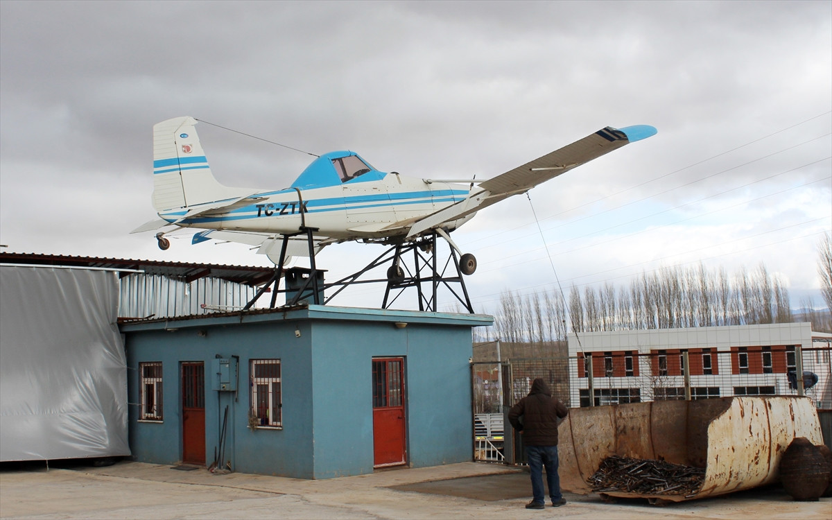 KONYA (AA) - Konya'nın Beyşehir ilçesinde hurdacılık yapan Hasan Erdoğan, zirai ilaçlamada kullanılan eski uçağı iş yerinin çatısında sergiliyor.