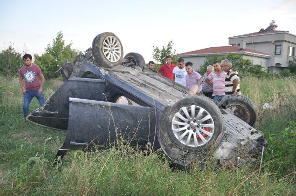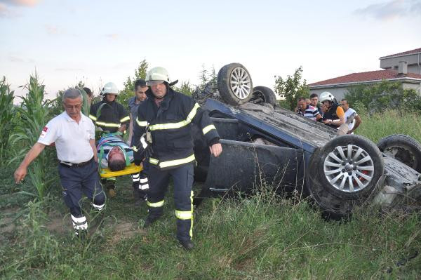 TEKİRDAĞ’ın Malkara ilçesinde kontrolden çıkıp taklalar atarak evin bahçesine giren otomobilin sürücüsü Erdinç Keski (36), yaralandı.