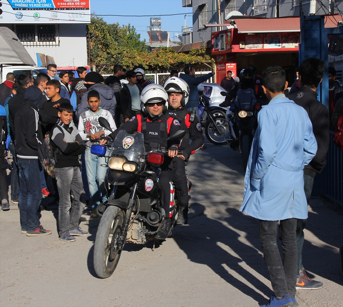 Bölgedeki denetimlerini tamamlayan emniyet mensupları, Süleyman Vahit Caddesi'ndeki Karşıyaka Mesleki ve Teknik Anadolu Lisesinde öğrencilerle bir araya geldi.