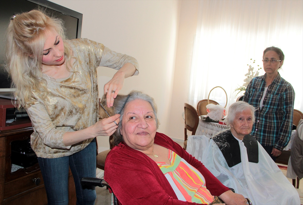 MANİSA (AA) - Manisa'da, kuaför Behra Kasper Çiftçi, "Anneler Günü" için huzurevinde kalan kadınların saç ve yüz bakımını yaptı.