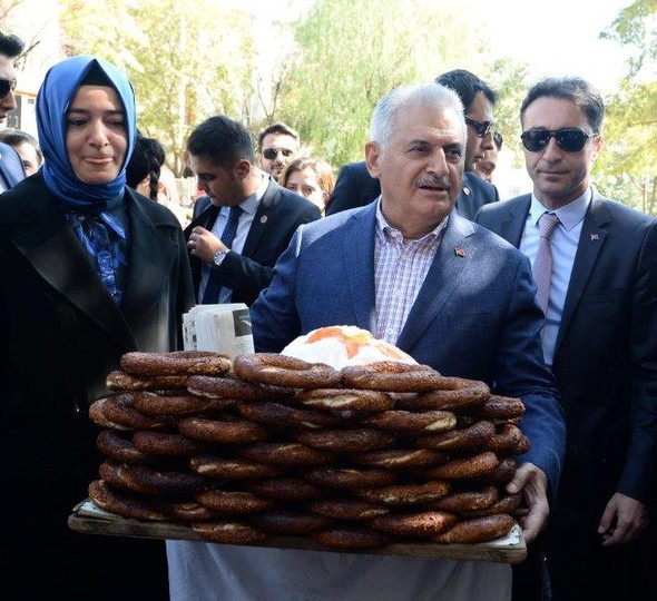 Başbakan Binali Yıldırım, bir simit tezgahının arkasına geçip sokakta bulunan çocuklara simit dağıttı.