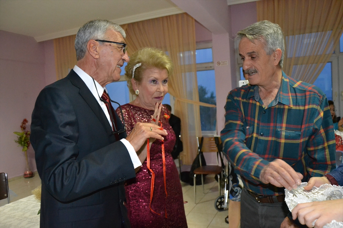 ÇANAKKALE (AA) - Biga Sağlık ve Eğitim Vakfı (BİSEV) huzurevi sakinlerinden 68 yaşındaki İbrahim Balcıoğlu ve 68 yaşındaki Güner Yıldız, için nişan töreni düzenlendi.