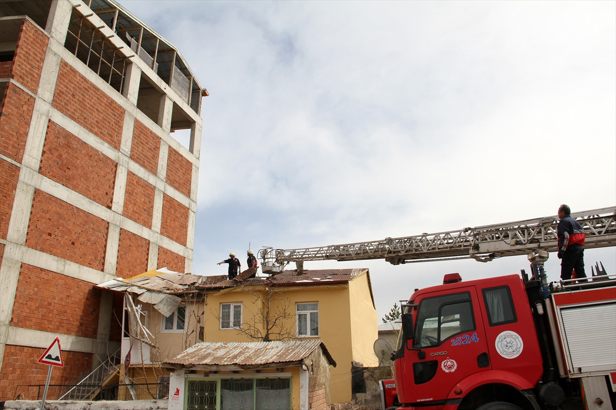 Sivas'ın Suşehri ilçesinde, Nail Ersin’e ait inşaat halindeki beş katlı binanın son katının tuğla duvarı, şiddetli rüzgar nedeniyle yanındaki iki katlı ahşap evin çatısına devrildi. Kaya Yılmaz’a ait evde hasar oluştu.