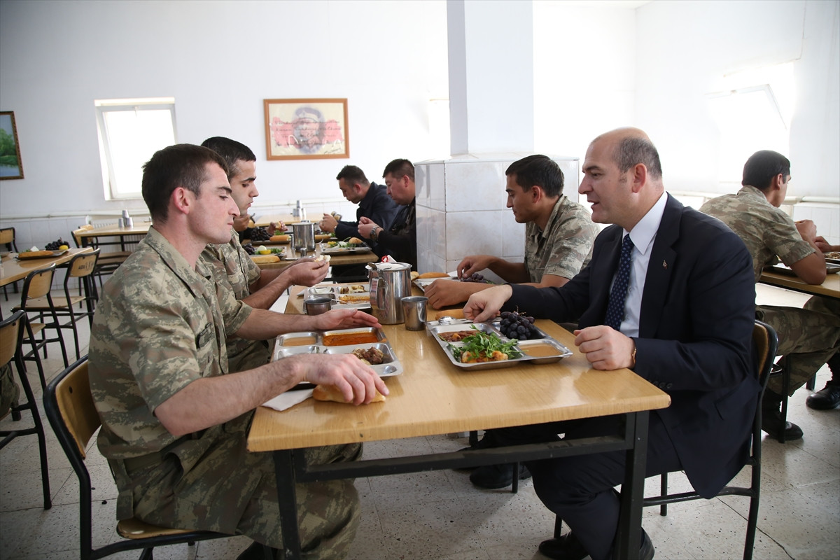 Soylu, daha sonra 23. Jandarma Sınır Tümen Komutanlığına geçerek burada askerlerle yemek yedi.