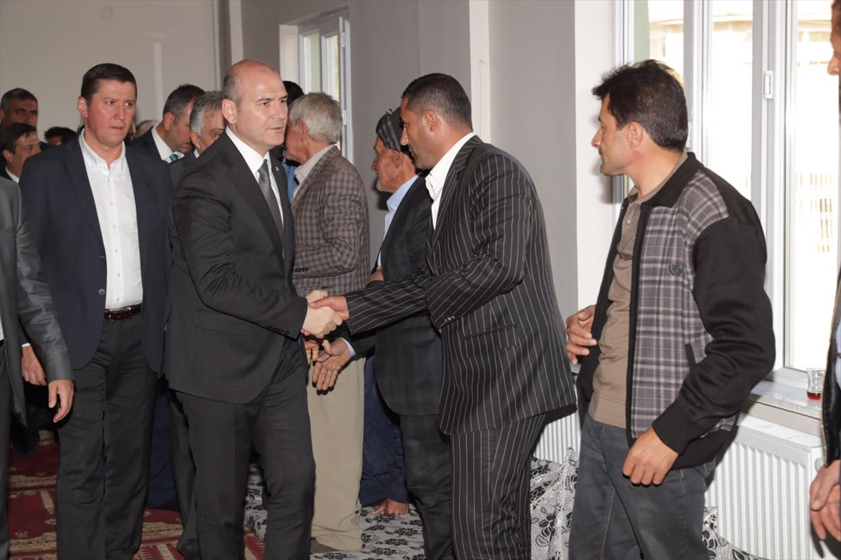 HAKKARİ (AA) - İçişleri Bakanı Süleyman Soylu, Yüksekova'da kobra tipi zırhlı aracın kule kısmındaki silahın ateş alması sonucu hayatını kaybeden 4 kişinin taziye törenine katıldı.
