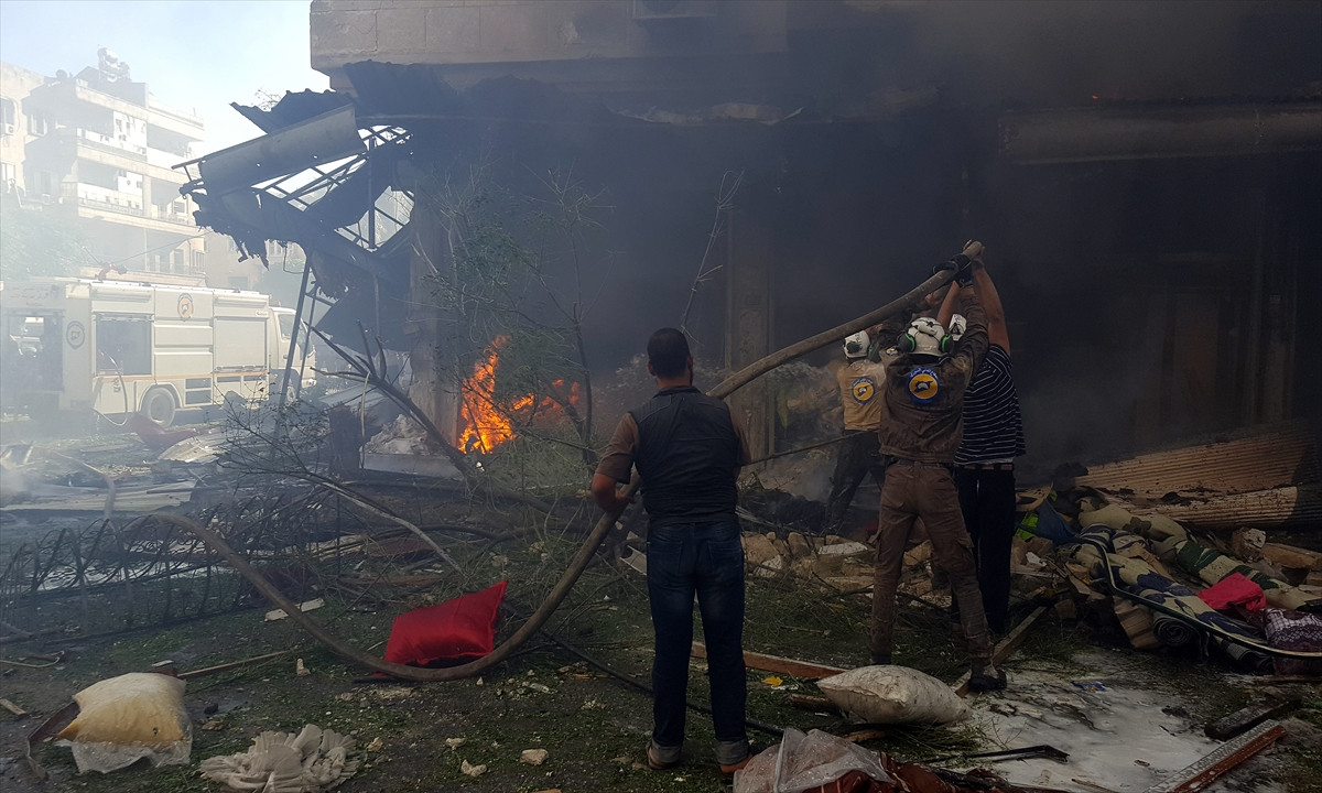 İdlib'deki sivil savunma yetkilisi Leys Firas, AA muhabirine yaptığı açıklamada, muhaliflerin kontrolündeki İdlib'in kent merkezindeki çarşı, Akraiy Camisi, Şamaat kavşağı, Amn el Davle kavşağı ile Carlton Hotel'in çevresine Rusya'ya ait savaş uçakları tarafından saldırı düzenlendiğini söyledi.