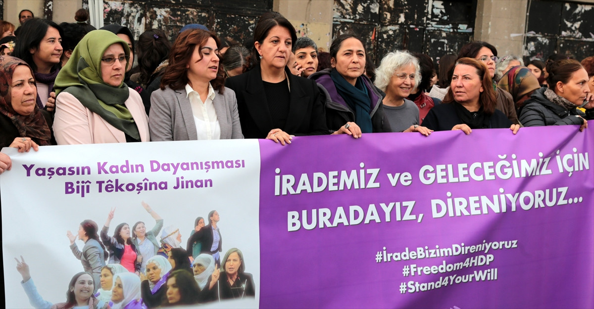 Kadıköy İskele Meydanı'nda toplanan TBMM Başkanvekili ve HDP İstanbul Milletvekili Pervin Buldan'ın da arasında bulunduğu gruptakiler, pankart açtı.